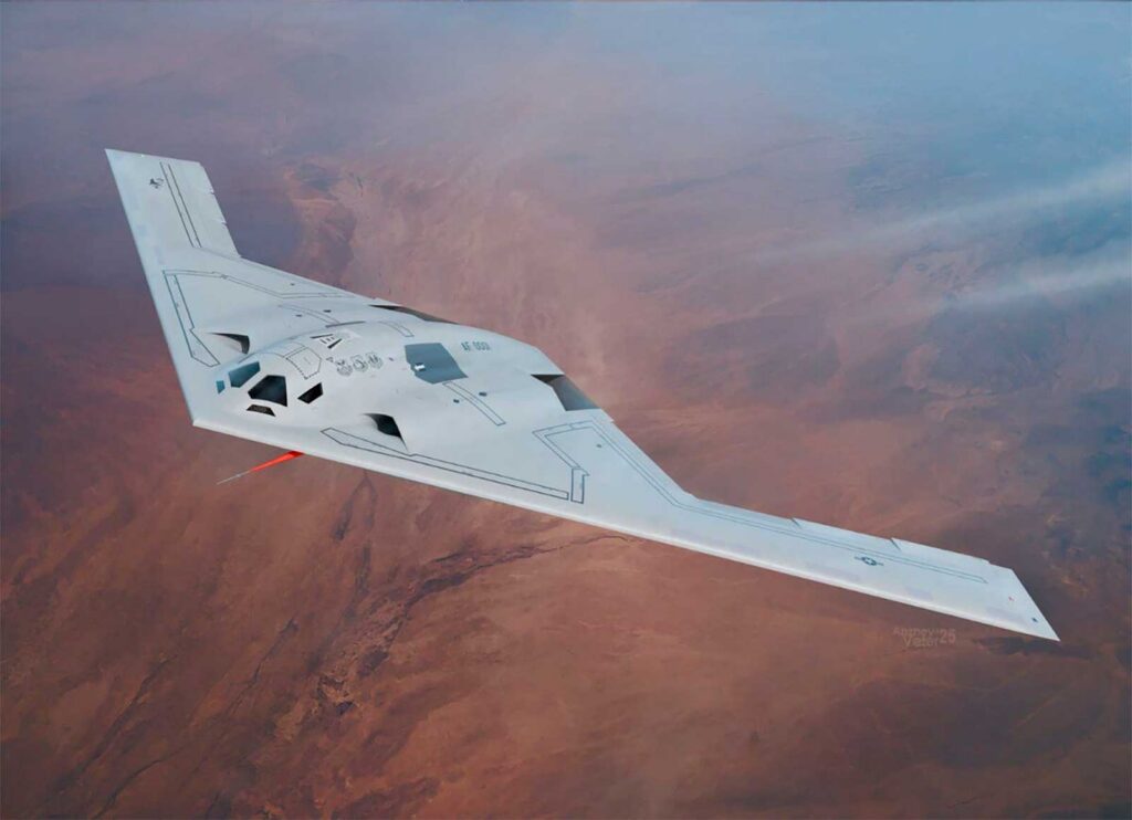 Em testes acelerados em 2026, com produção aumentada em 25% e entregas operacionais previstas para 2027 na Ellsworth AFB. Menor que o B-2 (envergadura ~132 ft vs 172 ft do B-2), mas com stealth duas gerações superior (RCS estimado em 0,01 m²). Dois motores Pratt & Whitney PW9000 (mais eficientes que os quatro GE F118 do B-2), alcance superior a 6.500 milhas náuticas e custo unitário de ~US$ 692 milhões. Capacidade nuclear e convencional. O Pentágono planeja pelo menos 100 unidades, mas relatórios do Mitchell Institute recomendam 200+ para confrontar a China em um cenário Taiwan.