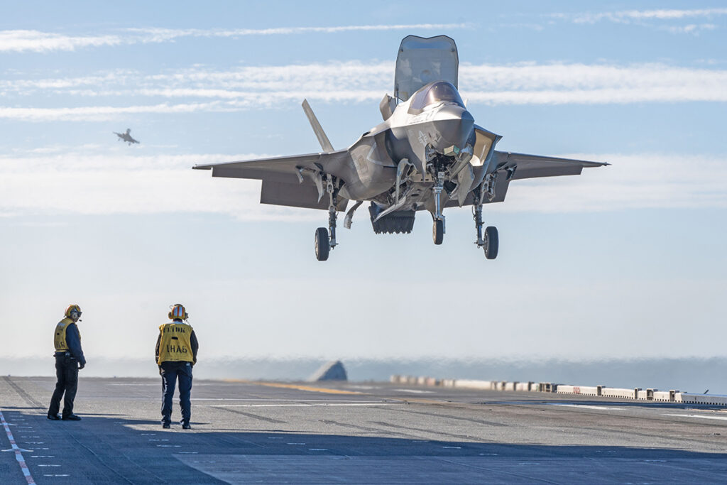 Caça multirole de 5ª geração, projetado para guerra em rede. Sensor fusion avançado (AN/APG-81 AESA radar + Distributed Aperture System) permite que o piloto “veja” o campo de batalha em 360°. Versões A (Força Aérea), B (decolagem curta/vertical para Marines) e C (porta-aviões). Vantagem: interoperabilidade com aliados, custo operacional mais baixo que o F-22 e capacidade de penetrar defesas antiaéreas para atacar alvos terrestres. Diferença chave em relação ao F-22: menos ágil em dogfight puro, mas infinitamente superior em consciência situacional e guerra de informação.